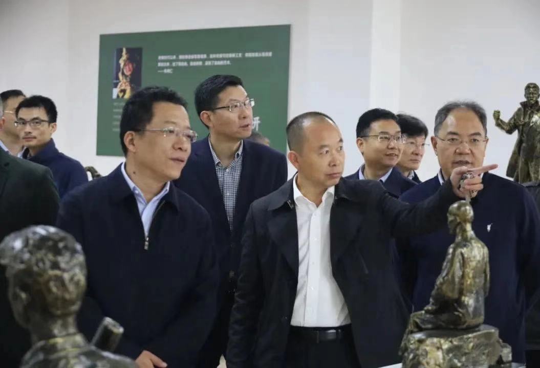 2020年11月21日上午,市委書記丁純等市領導到高新區(qū)銅官府文化創(chuàng)意股份公司新基地調研,這是繼今年4月26日之后,丁書記第二次調研銅官府。丁書記一行參觀了銅官府大師工作室和展廳,同時參觀了金星銅、大明銅匠生產基地。特別對正在裝飾的5000平方米徽式銅建筑提出期望。市委副書記趙振華,市委常委、常務副市長程雙林,市委常委、經開區(qū)黨工委書記黃化峰,市委常委、樅陽縣委書記劉亞東等領導也一同參加了調研。